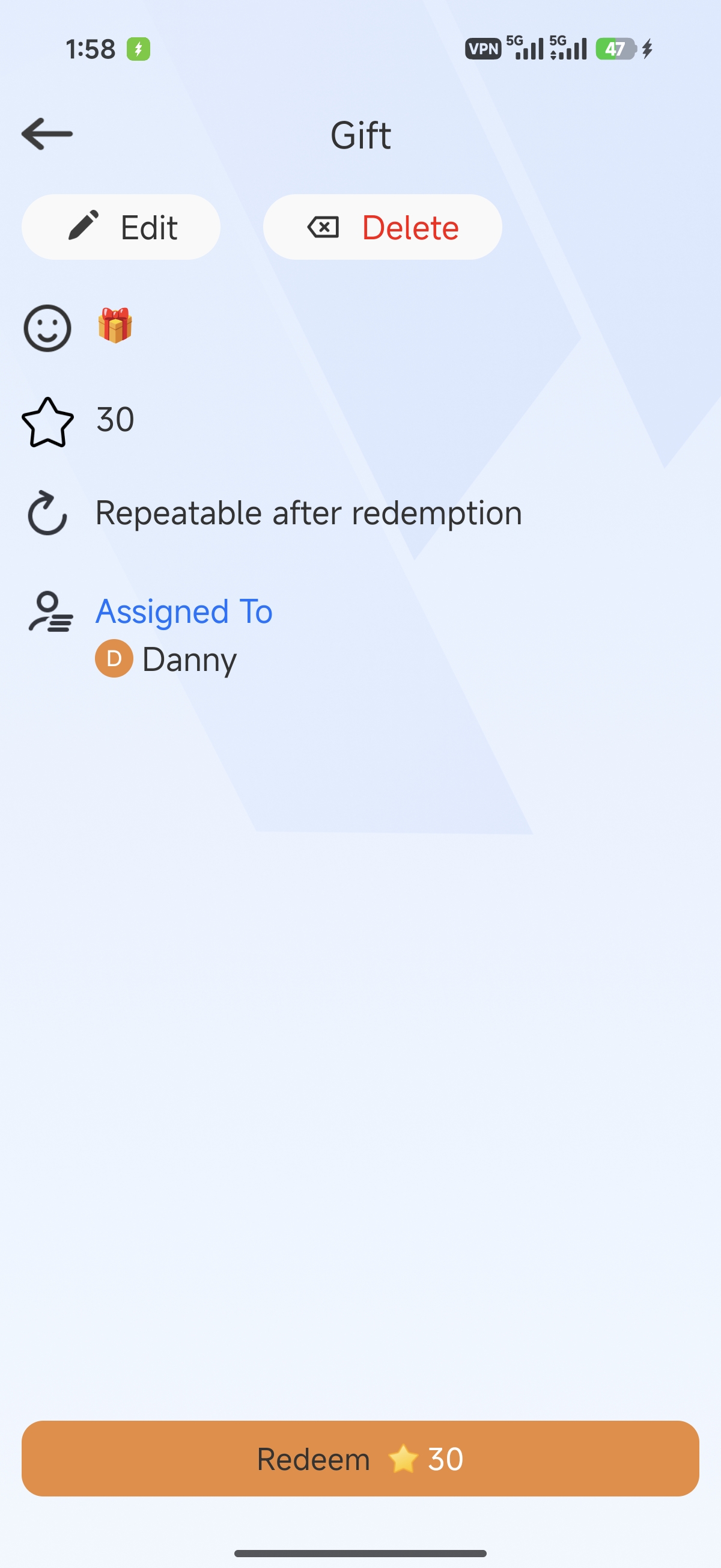 - Select the reward you want to delete.