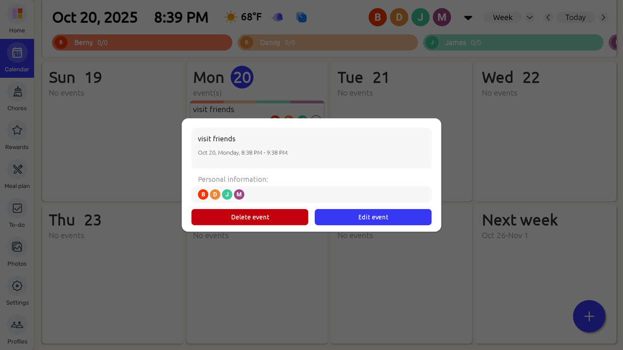 Deleting events is quick and simple, whether you’re managing your schedule on the calendar device or from your phone.