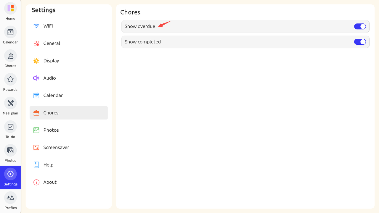 Timed chores or all-day chores that are not finished will remain active until completed. Overdue chores will still count toward the day’s total task goals, helping your family stay consistent.