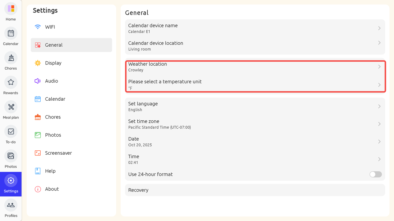 You can display the current weather directly on your Everblog Calendar and customize how it appears on the device.