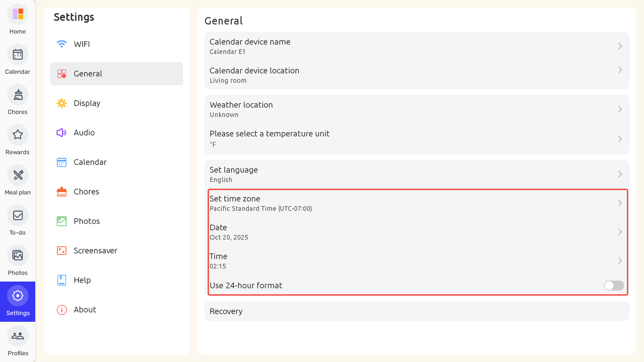 You can display the current weather directly on your Everblog Calendar and customize how it appears on the device. Step 1: Open Weather Settings On your Everblog Calendar, go to Settings → General → Weather. Step 2: Set Your Location First-time use: ...