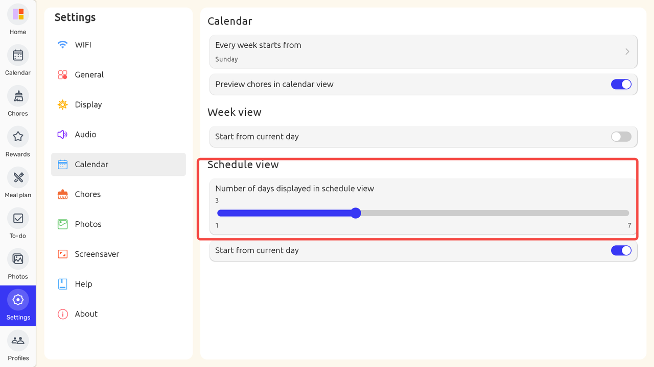 3.Use the slider to select the number of days you want to display — from 1 to 7 days.