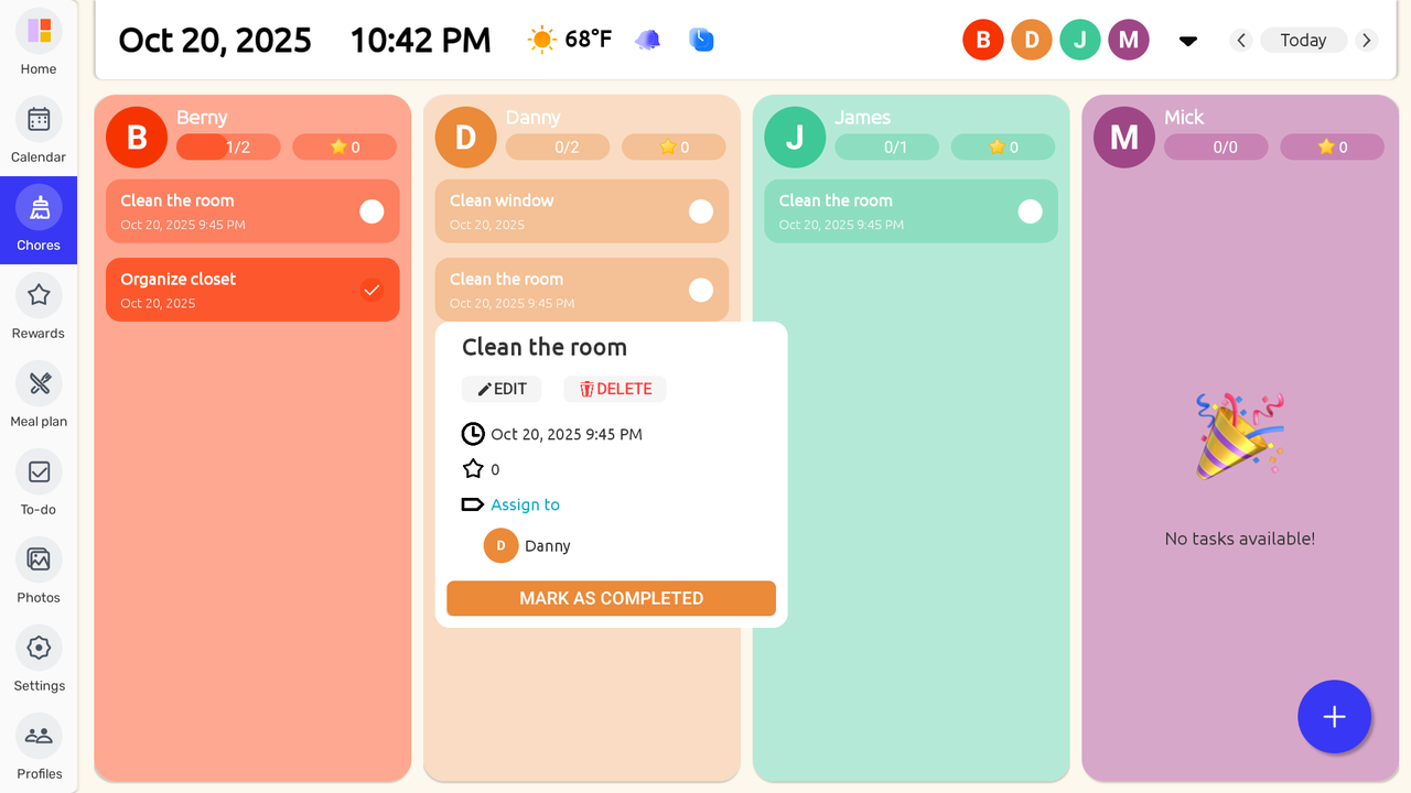 - When all chores for that profile are completed, a custom animation will appear on the screen, confirming that all tasks for that profile have been finished.