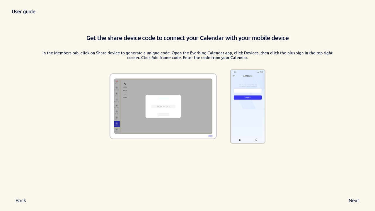 Use the unique invitation code displayed on your device to link it with your Everblog App.