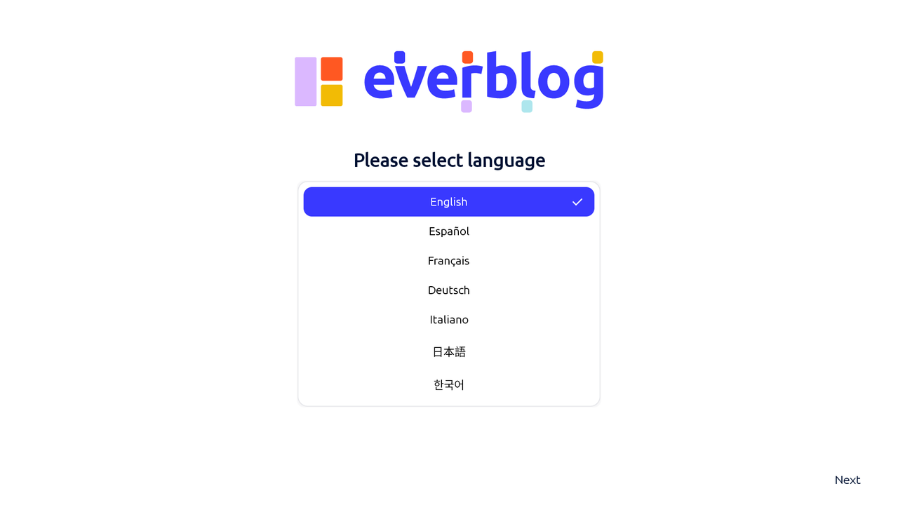 Turn on your Everblog Calendar and choose your preferred language from the options provided.